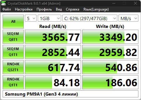 Решил проверить у себя и да, разница есть (Samsung PM9A1 в PCIe 3.0)