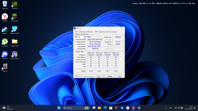 Micron на чипах Micron с частотой 3200 и CL22. Вот такую ищите. Если такой нет, то любую с частотой 3200 и CL22 (или меньше - я про CL). Если сами будете ставить плашку, то аккумулятор отключите.