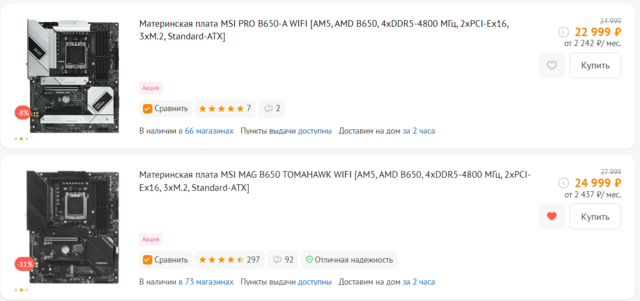 На озоне так же попалась вот такая ASUS TUF GAMING B650-PLUS и по цене она довольно близка к предыдущей, но в том же DNS дороже на 4 тысячи. Стоит её рассматривать или можно остановиться на MSI PRO B650-A Wi-Fi ?
