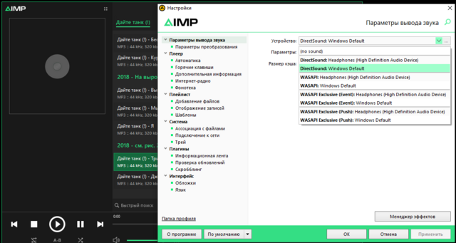 Кстати интересно проверить, будет ли нормальный звук через AIMP, если выбрать WASAPI Exclusive?