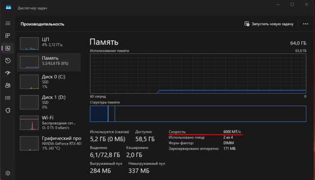 Перед тем как включать смотрел через диспетчер задач и было 4800, сейчас 6000. На скриншете видно. Спасибо Вам!