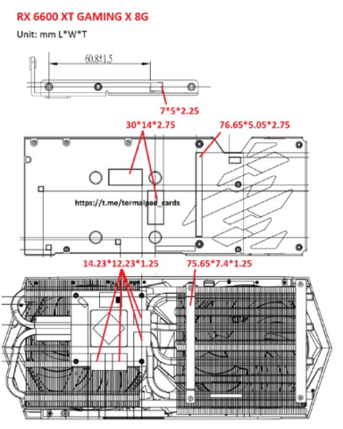 Размер термопрокладок MSI RX 6650 XT GAMING X