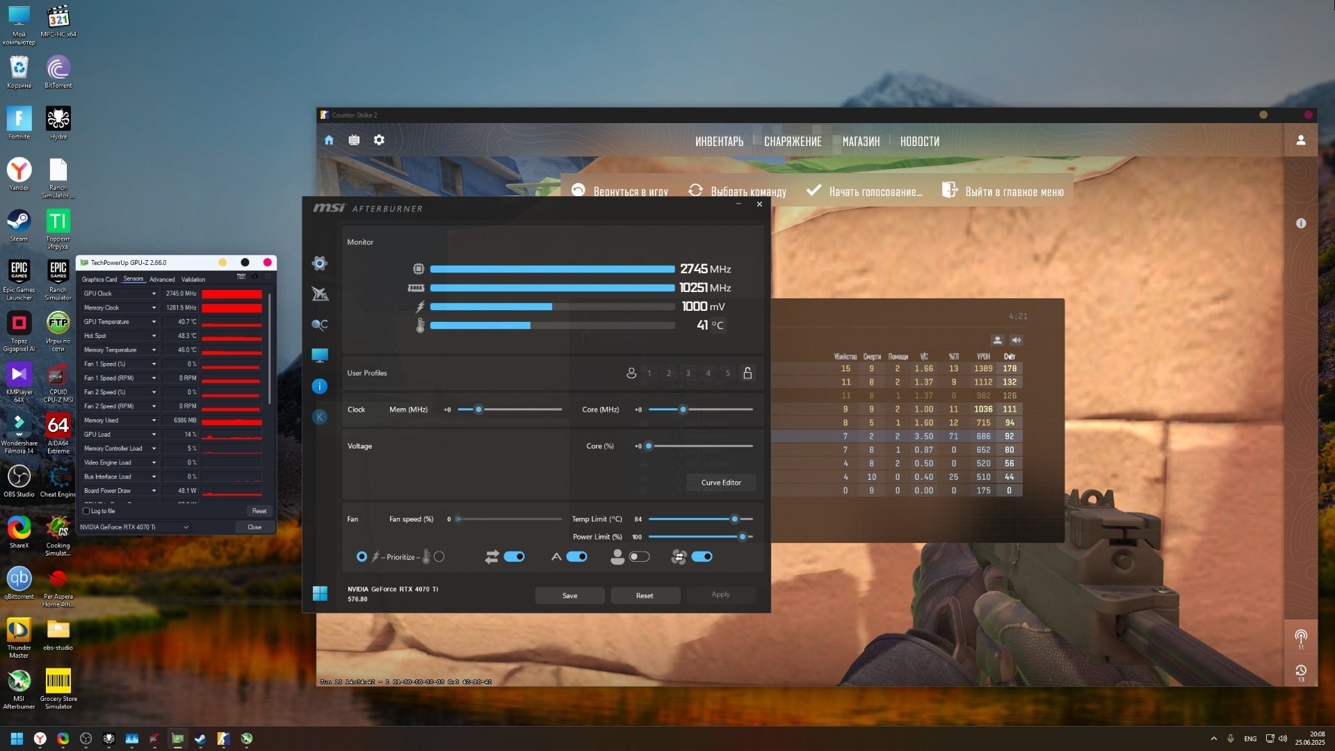 Не не не, даже мой i7 8700 с памятью 4000 cl16 полностью нагружает GTX 1070 в FHD на минималках. Это в CS:GO видеокарта была не важна, а в CS2 она очень даже важна и 4070 Ti тут не лишняя.