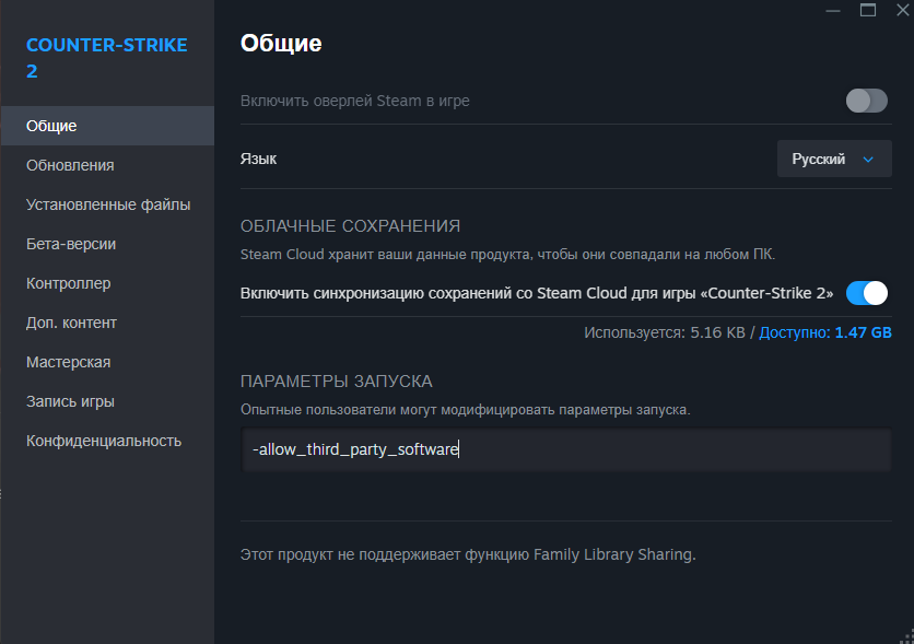 Для записи CS2 нужно использовать параметр запуска -allow_third_party_software