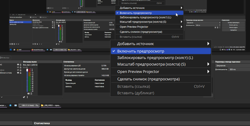 Из-за винды 24H2 могут быть проблемы, она какая-то кривая в последних билдах. Предпросмотр не забывайте отключать, а то эта тварь жрёт много ресурсов + сворачивайте окно ОБС.