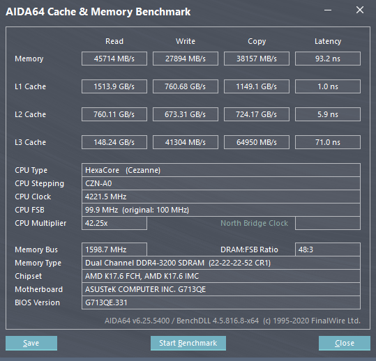п.с. Добавлю показатели памяти у меня на ноуте с 5600h. Практически также, как у вас. И FPS у меня на ноуте такой же, как у вас.