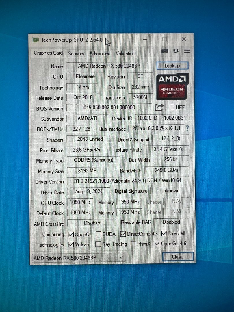 Помогите найти BIOS для Sejishi RX580 2048SP (K4G41325FD-HC25)