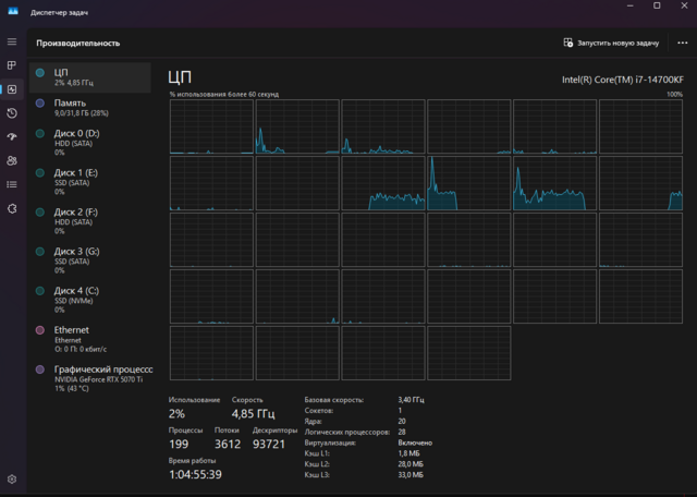 Теперь ставлю все игры только на М2. Фризы бывают по 1-2 штуке примерно раз 15-30 минут. Медленный прогруз текстур случается чаще. Тестил на SnowRunner и на Lost Records - Bloom & Rage. Появилась мысль... Может 5070ti просто не вывозит на максималках? Пробовал на средних, но это было до того, как поменял оперативку и с простого SSD. Раньше играл на 3090, там 24гига видеопамяти, ни в одной игре такого не наблюдалось. Понимаю что надо тестить, но так, на вскидку, может ли 5070ti просто не вывозить?
