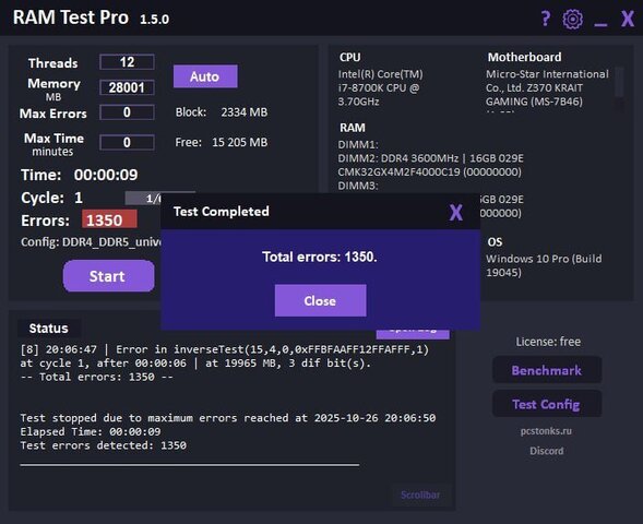 синий экран, проверка целостности файлов в играх постоянно сообщает о проблемах, а если и проверяет - игры вылетают. При синих экранах я гуглил ошибку где было указано на драйвера, диски и оперативную память. Скачал CrystalDisknfo состояние у всех дисков хорошее и драйвера все стоят и полностью обновлены + винда до конца обновлена. Остался вариант с озу, полез я в биос и начал тыкать и оказывается, что при включение XMP профиля с 4000mhz ПК не запускается, причем если включить XMP и выставить 3600, то запускает. Тыкал тыкал, ставил меньше - появлялось больше синих экранов, тыкал больше - стало меньше синих экранов, но проверка файлов в играх все равно ругается.
