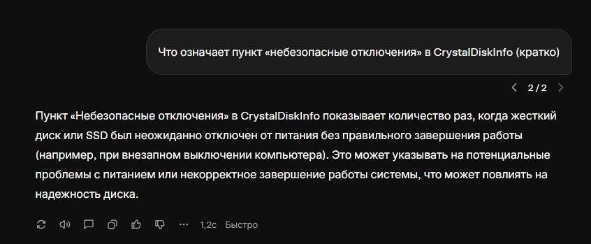 Что означает пункт «небезопасные отключения» в CrystalDiskInfo