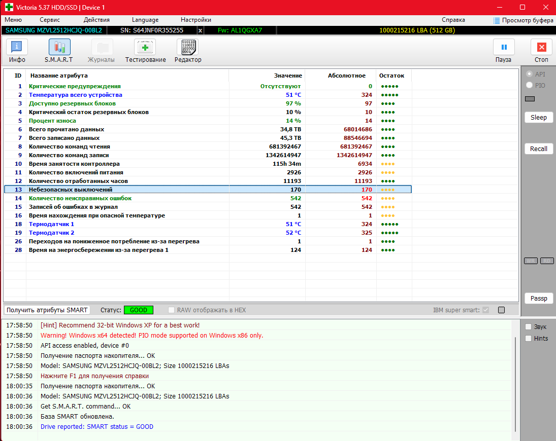 • Misferado изменил название на Что означает пункт «небезопасные отключения» в CrystalDiskInfo