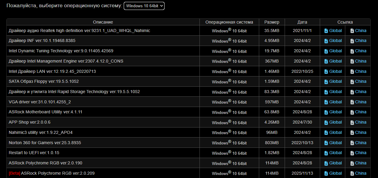 Какой-то ужас, а не сайт у ASRock. Второй качайте, который INF driver ver...