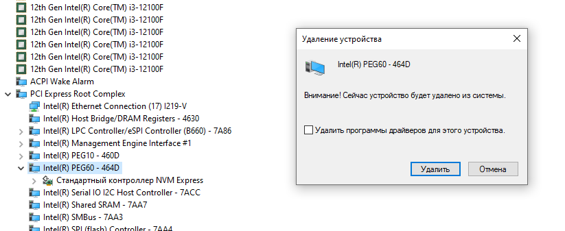 Вот так выглядит диспетчер устройств после "удалить устройство". Скорости не изменились.
