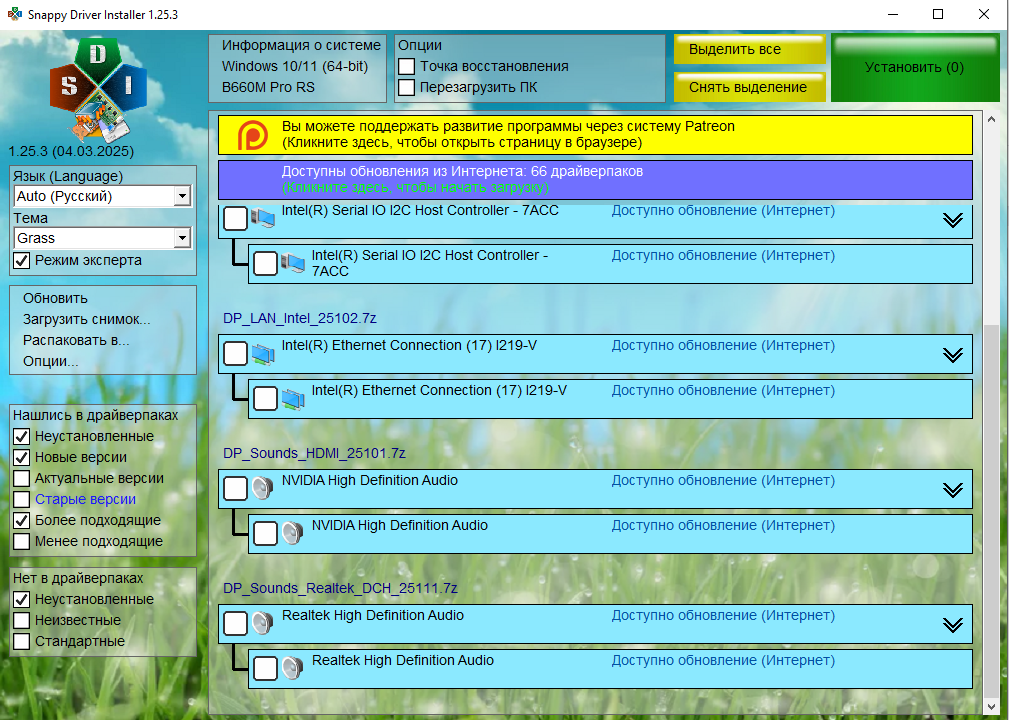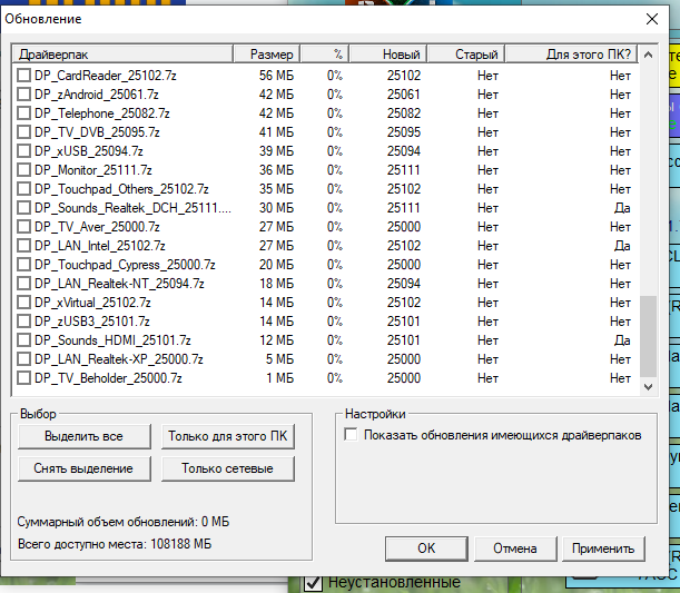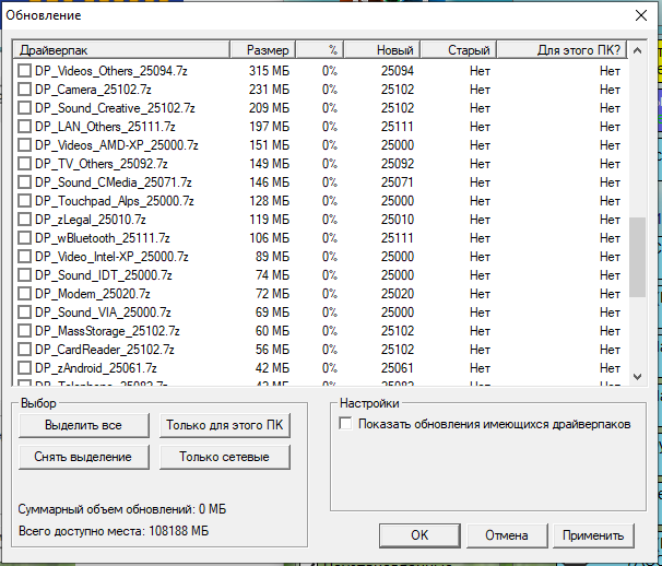 Накатил драйвера, что выбирал на скринах видно, не знаю нужно ли было в развернутом списке выбирать драва (просто нажал кнопку "выделить все").