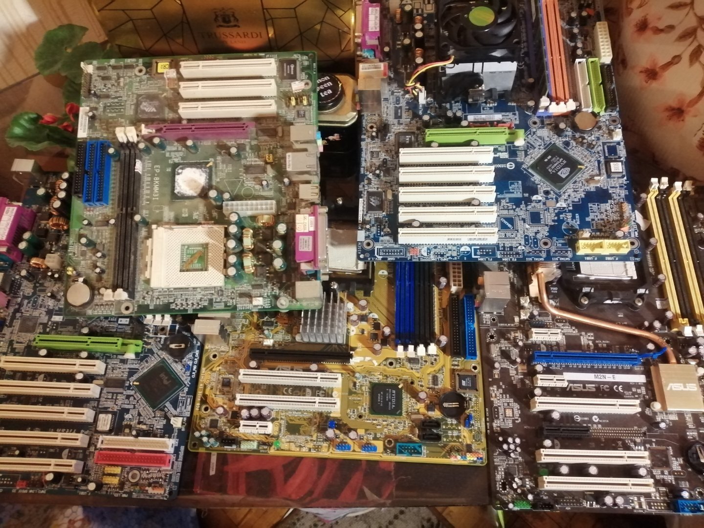 Нашел кстати вертушек 10 на 80 и 90 и к удивлению все рабочие, а не как современные пару лет работы и на пенсию🙂 Кстати 3 материнки проверил ради интереса и все 3 рабочие, правда не знаю на сколько, нет для паточки сокетов нужных ЦП. А так в полне можно собрать рабочие машинки. К примеру на даче встроить в стену и использовать как мультимедиа станцию для музыки, фильмов и даже игр тех годов, у всех встроенное видео🙂