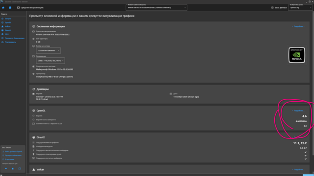У меня и стоит последняя версия драйвера 581.80, а вопрос возник из-за того, что в видео, где тестировалась такая же карта, но на драйверах 581.29 и там был OpenGL 4.6.