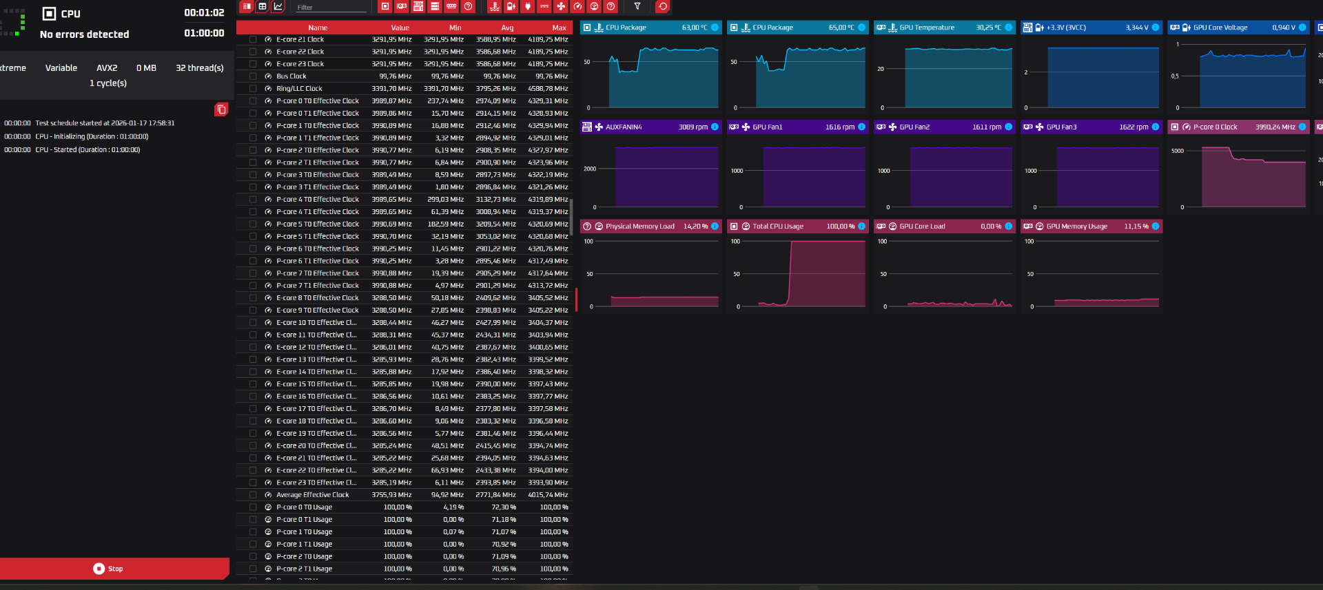 Если пролистать список датчиков вниз, какие частоты по отдельным ядрам?