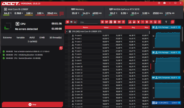 А если OCCT тест запустить не в режиме AVX, а в SSE?
