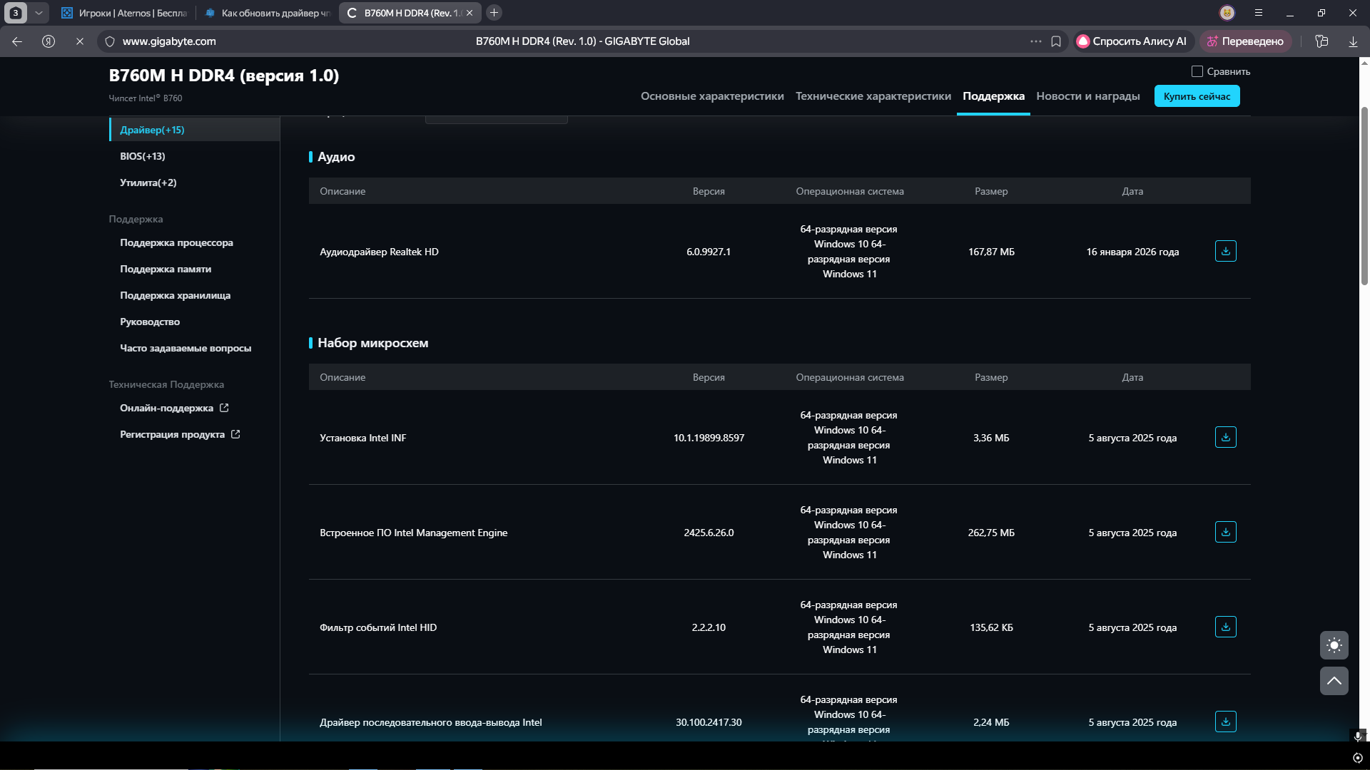 Как обновить драйвер чпсета на Gigabyte B760M H DDR4?