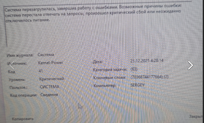 ПК перезагружается в игре, но в тестах и работе всё отлично. Ryzen 7 7800x3D + RX 9070 XT