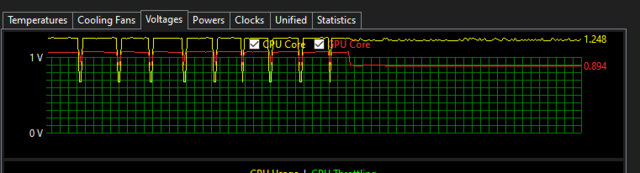Падение напряжение ЦП во время игры с 1.1 до 0.6