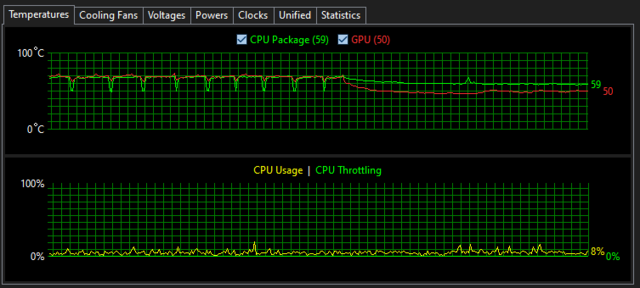 скачал aida64, заметил, что в момент просадки FPS падает напряжение на процессор почти у 2 раза. При этом, температура с 70 градусов сбрасывается до 55.