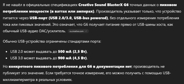 Писк и шумы в наушниках при подключении внешней USB звуковой карты Creative Sound BlasterX G6