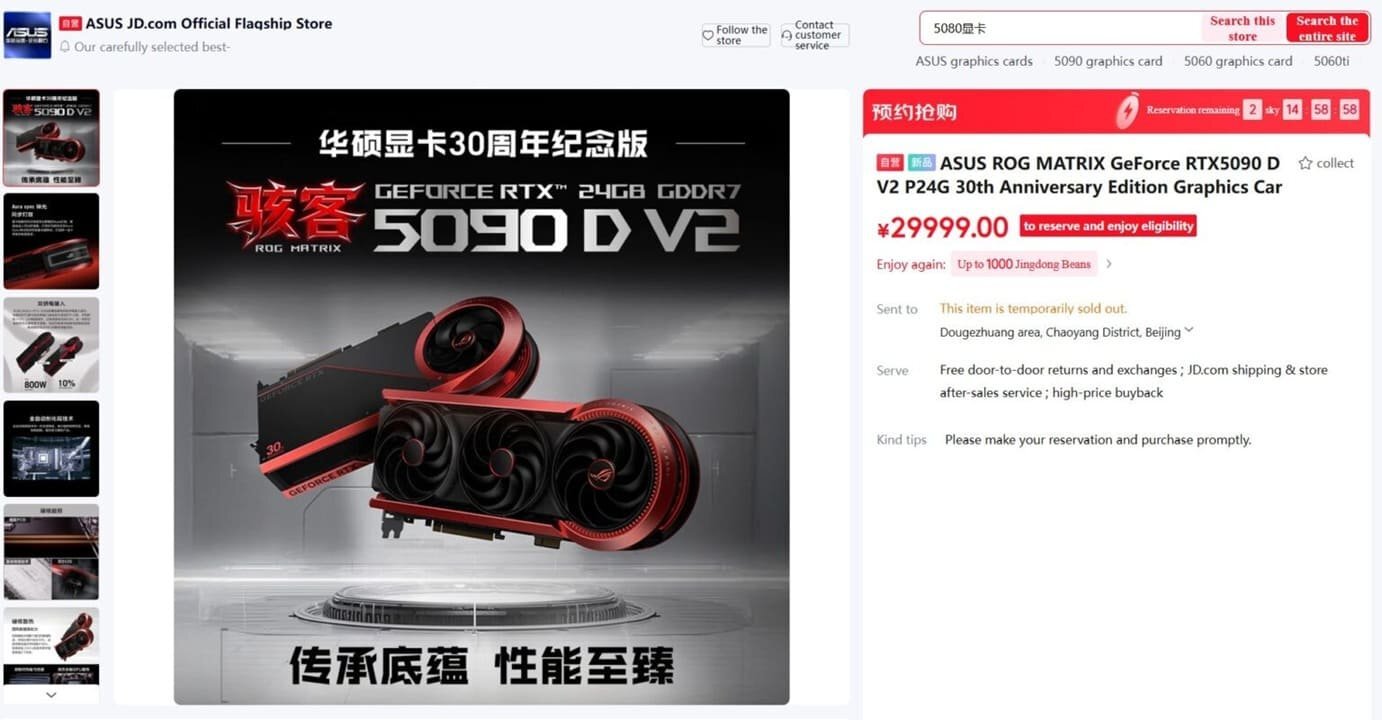 Китайская версия флагманской видеокарты ASUS ROG Matrix Platinum RTX 5090D за $4300