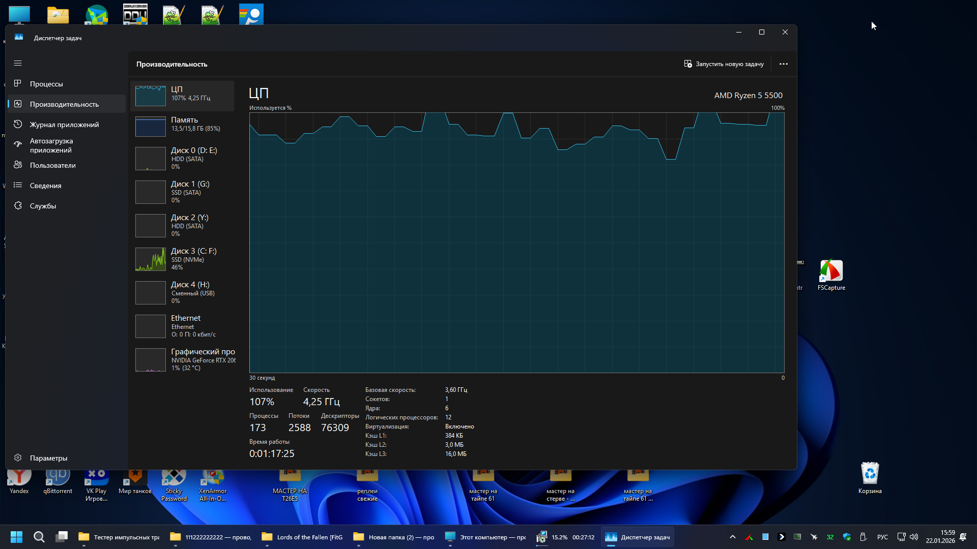 Процент нагрузки ядер в диспетчере задач отображается выше 100%