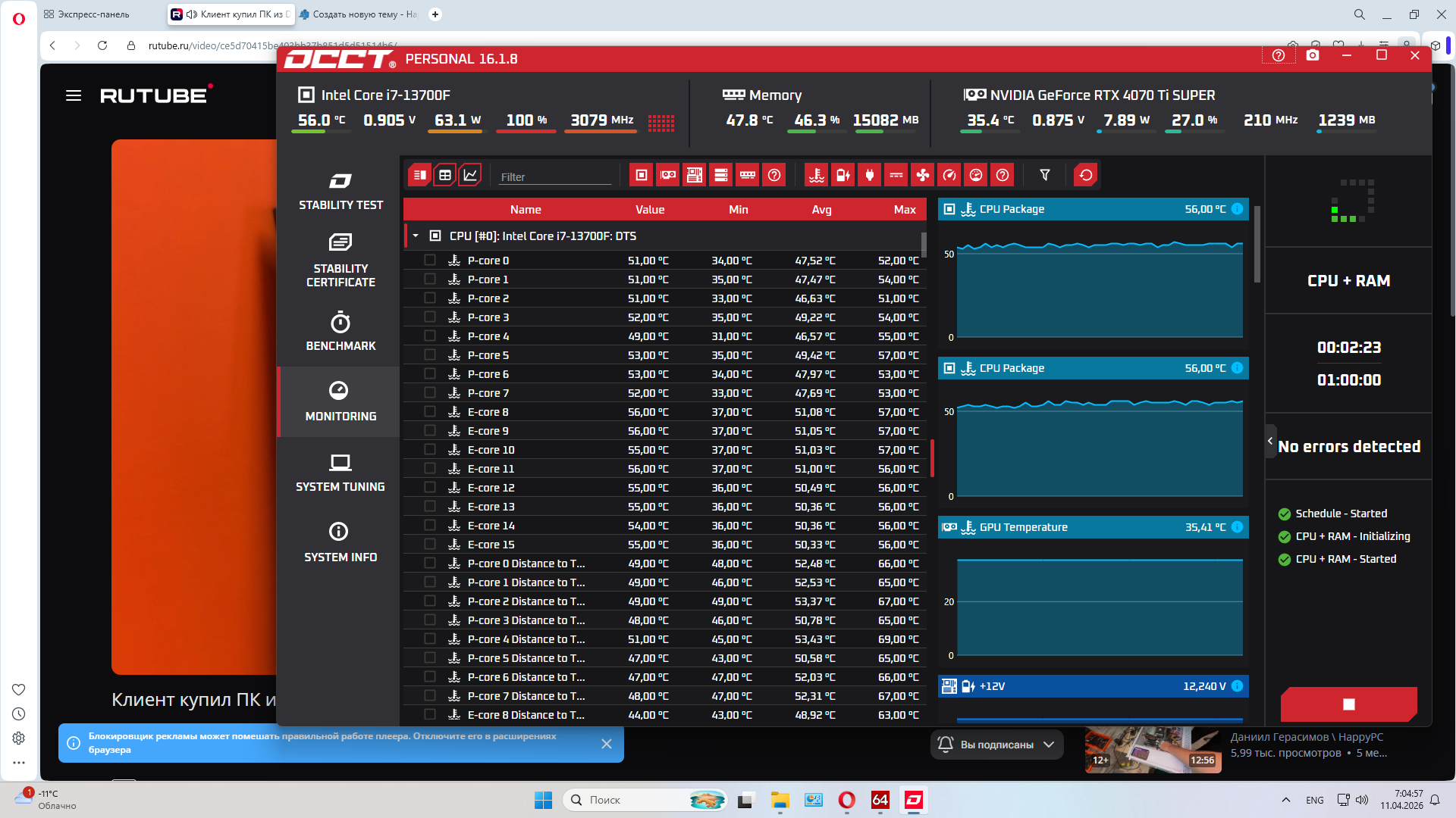 Низкое потребление процессора i7 13700f