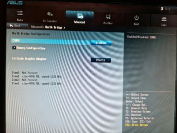 В качестве видеоадаптера что используете? В биосе стоит PEG/PCI - то есть инициализация интегрированной и внешней, при отсутствии внешней - используется интегрированная, а  видеопамятью становится оперативная память вашего пк.
