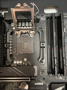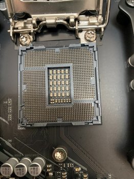 Доброго времени суток, в общем, почистил планки ОЗУ резинкой, пины процессора, также передернул разъемы питания 24 PIN и 8 PIN на материнской плате. Сфотографировал сокет, прикладываю. В этот раз ошибки в тесте полезли после 3х минут тестирования, раньше это было после 1 минуты 10 секунд примерно. Забавно, что вчера в видео на канале Дани принесли системник с такой же проблемой только с Intel i7 11700.