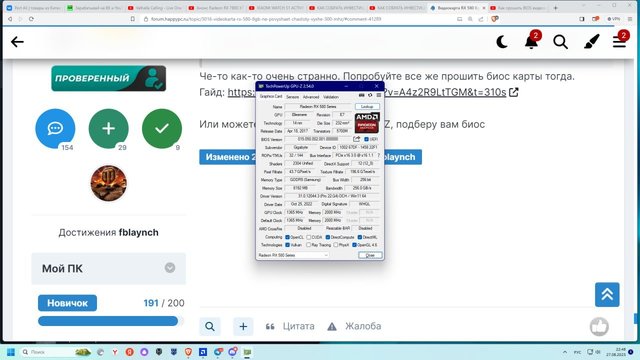 Видеокарта RX 580 8GB не повышает частоты выше 300 MHz