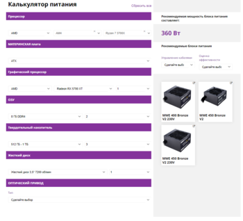 Выбор блока питания для Ryzen 7 3700x и XFX 5700XT