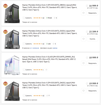 Господин мастер. Цены на товары которых "нет в наличии" в днс указаны такие, которые были на момент наличия товара. 16999 корпус стоил, возможно, 3 года назад, когда он был в наличии. Обратите внимание на наличие. Корпус evolv x довольно старый, у него дизайн 5-8 летней давности. Нет ничего удивительно, что цены так разнятся.