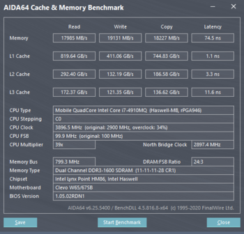 Ноутбук мамы моей на i7 4910mq, две плашки DDR3L-1600 на 8 и 4 Гб: тест АИДА 18-19 Гб/сек чтение/запись, при двух плашках на 8 Гб - 23-25 Гб/сек чтение/запись. После этого теста проникся важностью плашек одинакового объема в двухканале. Жаль, скрины из теста в ноутбуке, а ноутбук у мамы дома в деревне.