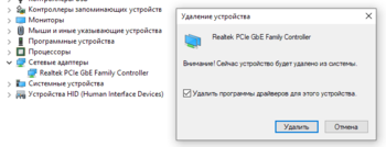 В диспетчере устройств поставьте галочку «показывать скрытые устройства» и удалите все сетевые устройства. Если отобразятся какие-то галочки во время удаления драйвера, активируйте их.
