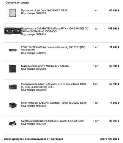 Полная сборка ПК на RTX 4090. Бюджет: 300к