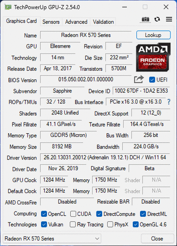 Доброй ночи. Пробуйте ставить вот эти дрова под нее новее лучше не использовать у самого с новыми гюки возникают на rx580 (см. личку), на этих драйверах все нормально работает смотрую у Вас вообще старее версия драйвера ...