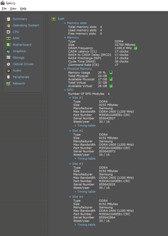 Из 32 ГБ ОЗУ видно только 24 ГБ. Стоит 4 плашки по 8 ГБ DDR4 | Samsung M393A1G40EB1-CRC
