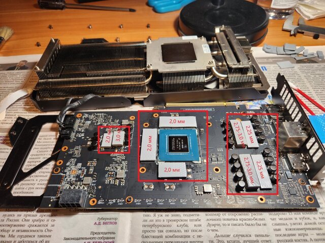 Не подскажете, есть ли где-то информация по толщинам термопрокладок на мою карту? Не смог найти.