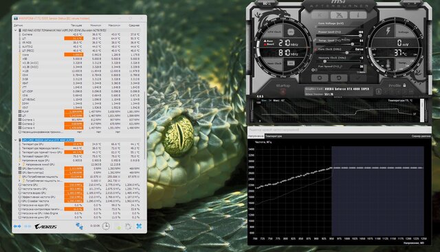 Есть видеокарта RTX 4060, сделал андервольт со следующими характеристиками: частота зафиксирована на 2475 MHz, вольтаж 0.925v, энергопотребление 90-105w.