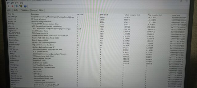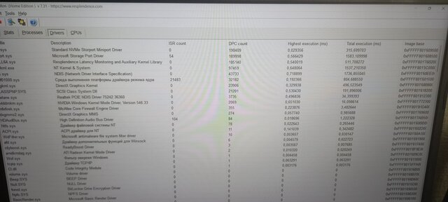 Высокая задержка (dpc count)storport.sys,nvme.sys и ndis.sys на Windows 11