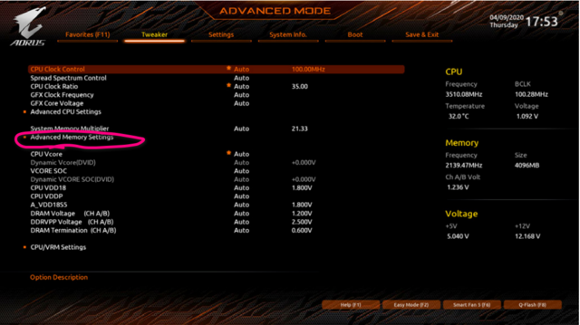 Подскажите пожалуйста, где найти настройки XMP в биос материнки Gigabyte B550M Aorus PRO-P + FURY Beast Black ( https://market.yandex.ru/product--operativnaia-pamiat-kingston-fury-beast-32-GB-16-GB-x-2-sht-DDR4-3600-mgts-dimm-cl18-kf436c18bbk2-32/1780094025?sku=992243366&do-waremd5=kcFR8P-rIKuagfmqOC4GmA&uniqueId=98000554 )
