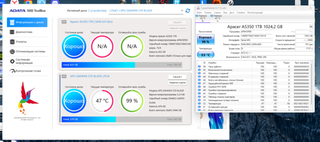 Накопители (HDD/SDD): ADATA XPG GAMMIX S70 BLADE [AGAMMIXS70B-512G-CS], Apacer AS350 PANTHER [95.DB2G0.P100C]