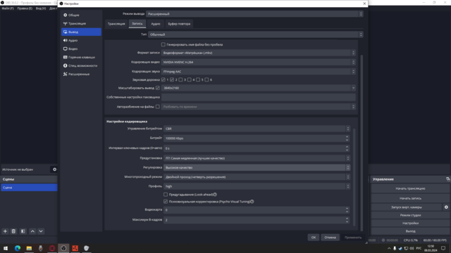OBS мылит запись в Windows 10. ASUS rog strix b660a gaming Wi-Fi ddr5 + Palit GeForce RTX 3070 Ti GameRock