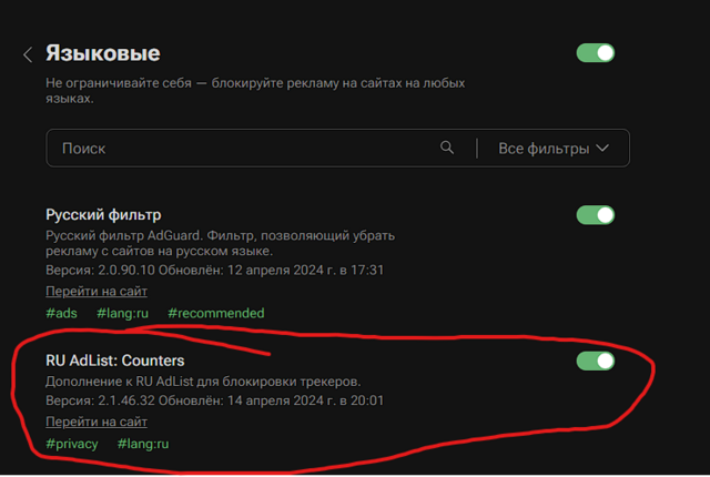 Да включено и настроено все у меня - я писал выше, что довольно давно знаком с адгард.