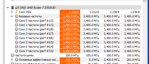 AMD Ryzen 7 5700x3d держит частоту строго 3400MHz