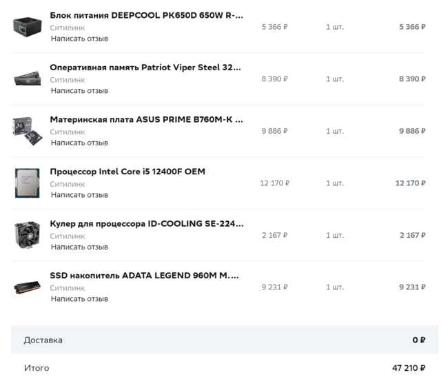 Подбор комплектующих за 35000 рублей
