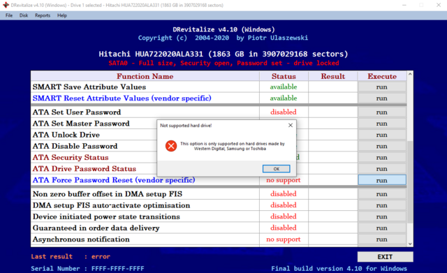 HDD 2 TB Hitachi как сбросить ATA пароль?